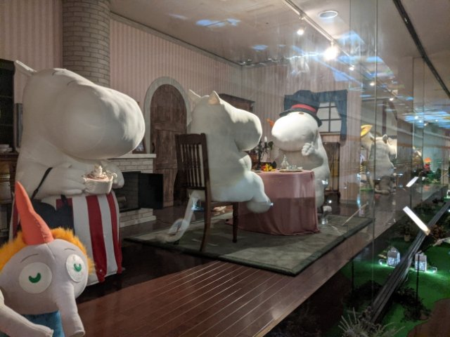 常設展は「ムーミンの世界へ~ムーミン谷へようこそ~」。タオルで作り上げられたムーミンキャラクターは、それぞれ1m以上というなかなかの大きさ。ずらりと並ぶ様子は圧巻です!
