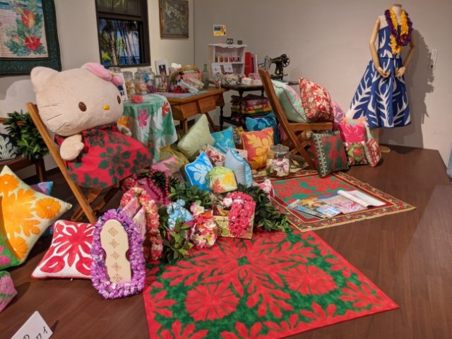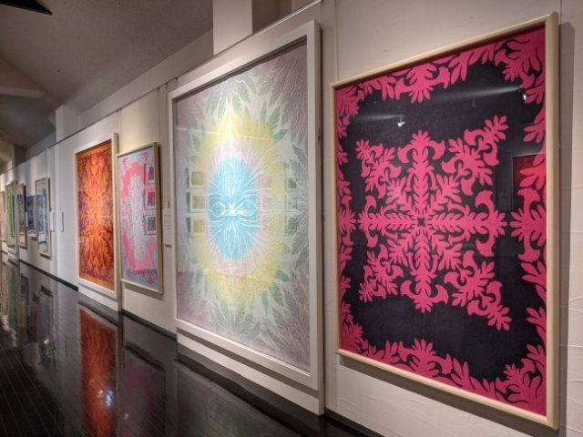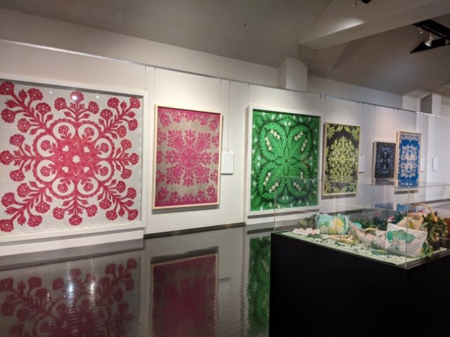 ムーミンと並ぶもう一つの常設展が「キャシー中島の世界 ハワイの風をあなたに」。マウイ生まれのハワイアンキルト作家、キャシー中島の作品が並んでいます。