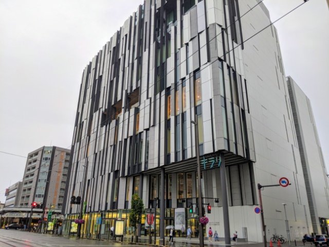 富山駅から市内電車環状線・グランドプラザ前駅下車後、徒歩2分ほど。富山市立図書館も入るTOYAMAキラリの建物内に入っています。
