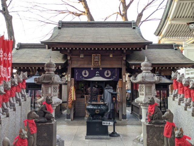 日本三大稲荷に数えられる豊川稲荷の別院。赤いのぼりがびっしりと並ぶ境内には色々なお稲荷様が祀られており、頭痛や肩こり、人間関係など様々なご利益がいただけます。お財布に忍ばせて金運アップを祈る融通稲荷も非常に人気です。
