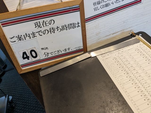 今回は平日の水曜日。夜の部オープン直後の17:15に訪問したところ、それでも40分待ちでした。口コミを見ると「80分待ち」「オープンと同時に行かないとすごく待つ」「90分待って料理提供にさらに30分」など、なかなかハードな内容が。
