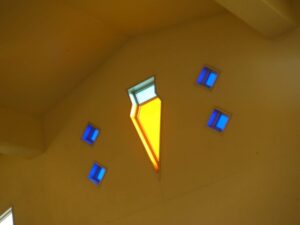 島内を散策していると、とにかく目立つのがニンジン。船に描かれたイラスト、マンホール、待合所のステンドグラスや海の家の屋根の上など、そこかしこにニンジンがいます。