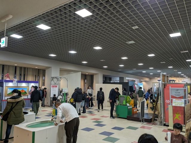1階の展示室は科学で遊べるコンテンツが盛り沢山。巨大シャボン玉に入ったり、エアバズーカを撃ったり、鏡の部屋があったりと、まるでアミューズメント施設のような雰囲気です。