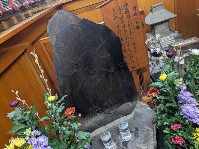 祀られているお地蔵様は、像ではなく自然石に刻まれています。後光が輝く神々しい姿です。