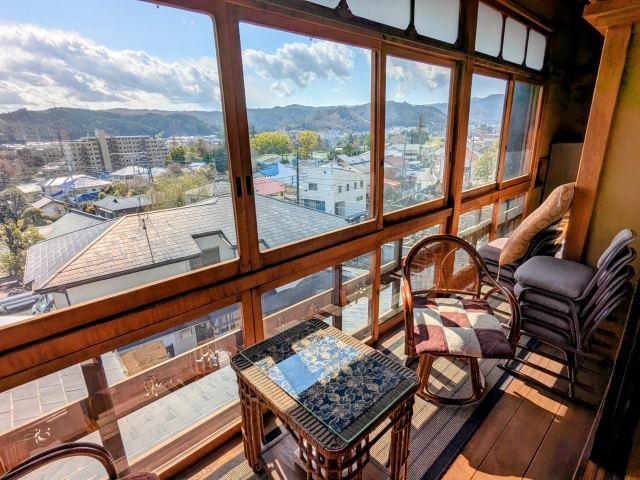 日当たりの良い縁側もあります。少しだけ歪んだガラスに情緒を感じますね。