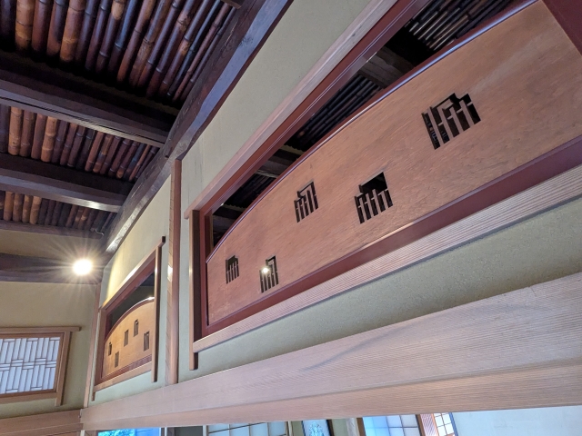 欄間に透し彫りされた不思議な幾何学模様。これが何か分かる方はきっと雅な御方。