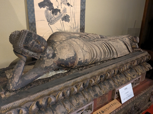 基本的に撮影不可ですが、特別に撮影許可をもらえたのが江戸時代の涅槃像。こちらは企画展の展示品ではなく、津雲邸が所蔵する作品です。