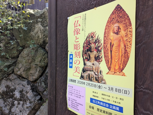 蒐集家であった津雲國利のコレクションを、50年ぶりに公開するというレアイベント。江戸時代作と伝わる不動尊明王坐像・虚空蔵菩薩坐像といった仏像や、神楽面・伎楽面などが多数展示されています。