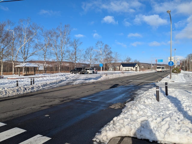 釧路市湿原展望台から北に12km(約15分)ほど進むと、道路沿いの左右に駐車場があります。