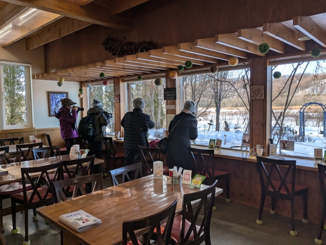 店内の窓からは、手入れされたお庭が見えます。ここも実は野鳥観察ポイント。