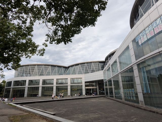 まず目に入ったのはこちらのインパクト抜群な建築物。ここは花博記念ホール。花博では「国際陳列館」として利用された建物です。
