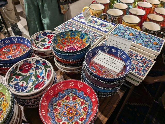 展示室を抜けた先にあるのはショップ。カラフルなお皿やボウル、そしてランプなど、オリエンタルな雰囲気の品々がたくさん並んでいます。品数も多く、もしかしたら展示よりもこっちに力入れているんじゃないかという気も。