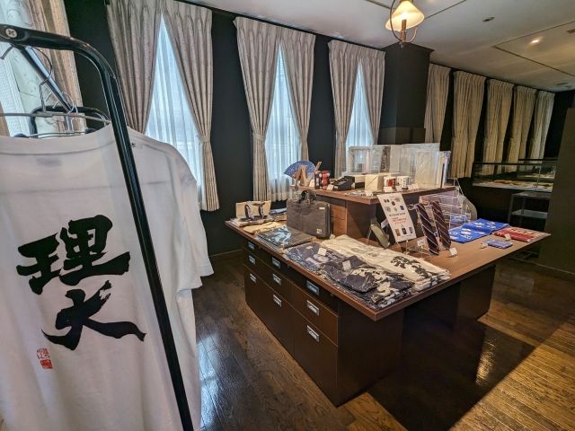 出口付近には理大オリジナルグッズの販売コーナーも。「理大」と書かれたTシャツやトートバッグなどスタンダードなラインナップに加えて、オリジナルの扇子、お箸、ゴルフボールなどユニークなモノも。最後にぜひぜひご覧ください。