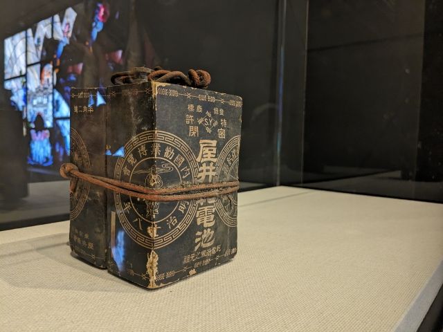 こちらの凄みのある箱は屋井乾電池。世界に先駆けて作られた国産の乾電池であり、屋井先蔵という人物によって発明されました。当時の時計はゼンマイ式で、時計ごとに時刻がズレているという問題を抱えていました。屋井さんは、東京職工学校への入学試験当日、そのズレのせいで遅刻とみなされ受験できなかったという自身の体験から一念発起。正確な連続電気時計を製作、さらに乾電池の開発を達成しました。
