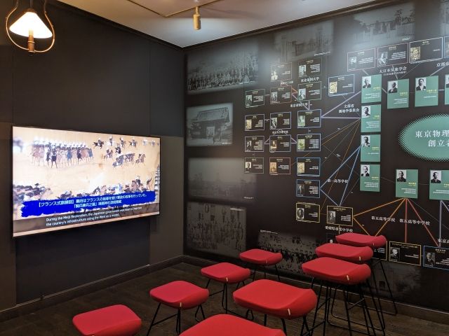 モニターでは、東京物理学校創立歴史が語られます。激動の明治や、戦争がおこった昭和など、時代と合わせて紹介されているため、歴史が好きな方はとっても楽しめる内容です。