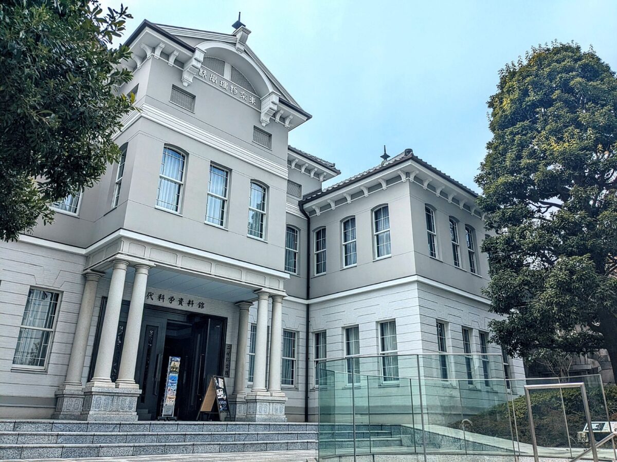 坊っちゃんの塔から細い道を進むとすぐに見えてくるのが近代科学資料館の建物。明治時代の洋風建築のような外観は、1906年に建てられた東京理科大学の前身「東京物理学校」の校舎を復元したものであるそう。