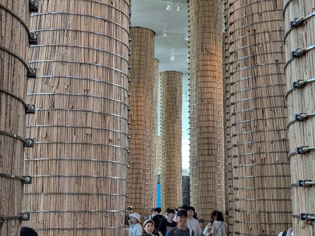 そんなUAEのパビリオンは、ガラス張りの外観が印象的。内部に立ち並ぶ木のようなものが見えます。