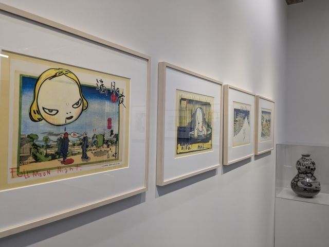 奈良美智の《In the Floating World》は、歌川国芳や葛飾北斎、安藤広重といった浮世絵の作品をポップに仕上げています。