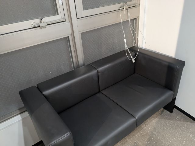 各フロアにはソファやベンチ、自動販売機も。自由に利用可能なスマホ用の充電器も置いてあります。きれいなトイレも複数フロアにあり、とっても快適です。