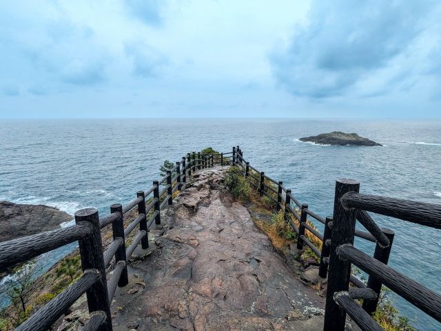 崖の上を柵に囲まれた道が続くという、なんとも絵になる光景。海に突き出したかのような展望台は開放感抜群で、果てしない闇の向こうに手を伸ばしたくなりますね。