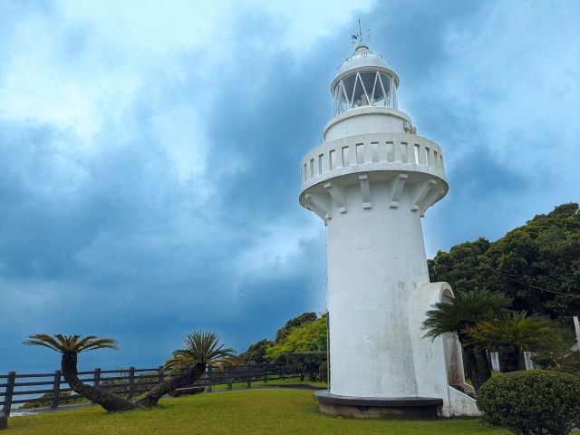 明治43年に点灯を開始した灯台で、その後何度か改修工事を経て現在に至ります。塔の高さは約11メートルと小ぶりですが、海面から灯火までの高さは約101メートルとかなりの高さ。