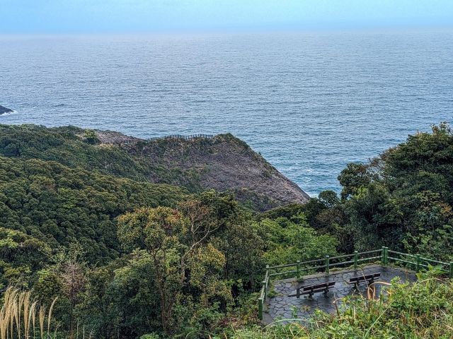 駐車場からさくさく歩いたところ、実際は5分ほどで日向岬馬ヶ背展望台に到着。