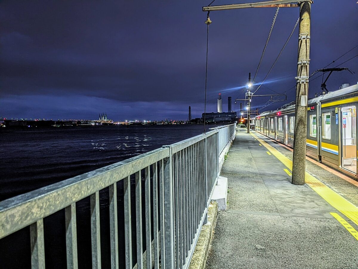 愛媛県にあるJR予讃線の下灘駅や、長崎県にある島原鉄道の大三東駅のような大海原が広がる海駅と比べると、東京湾という都会の海なので少し情緒は落ちるかもしれません。しかし、都心からすぐ行けること、そして日が暮れても景色が楽しめることがこの海芝浦駅の魅力です。