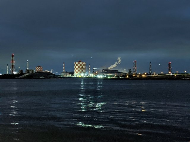 対岸となる扇島に広がる工場夜景もわずかながら見ることができます。