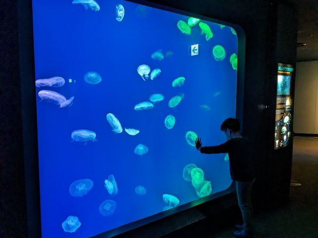 アートコーナーは、海の生き物たちの美しさを芸術的に表現したエリア。カラフルに色づくミズクラゲをはじめ、キレイな写真を撮りたくなるような展示内容になっています。