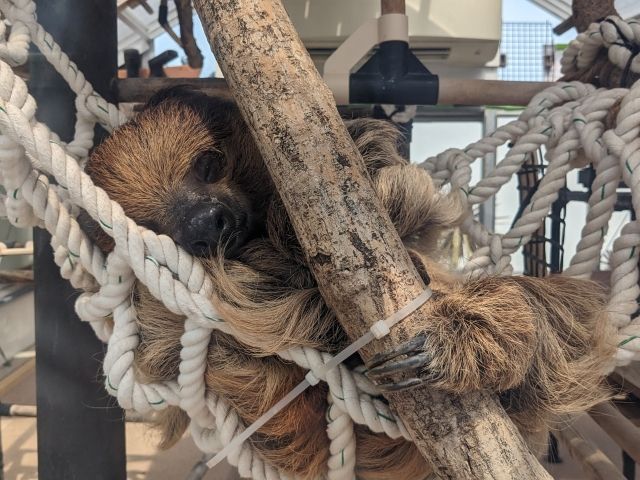 あそびーちのすぐ傍では、フタユビナマケモノとムツオビアルマジロの飼育も。