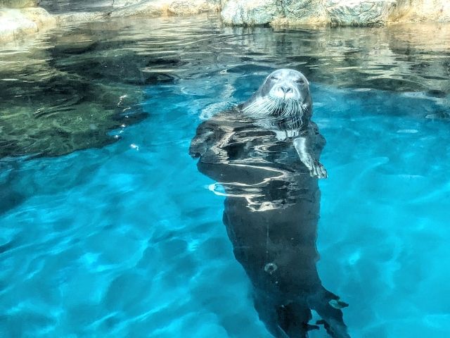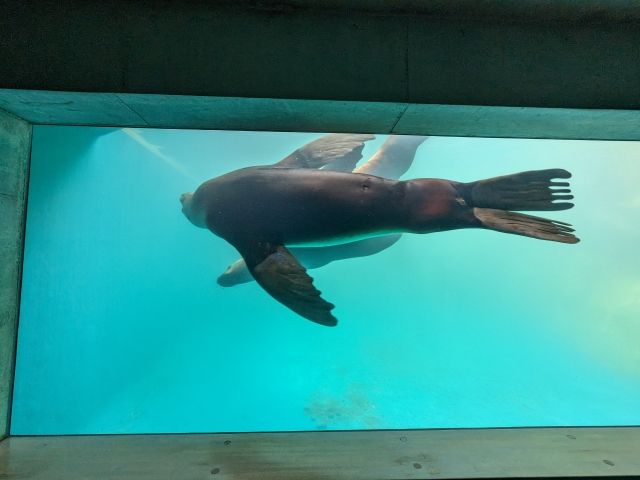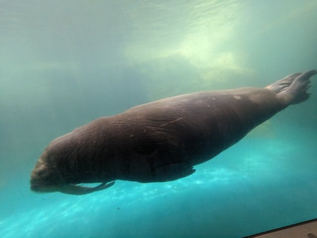イルカだけでなく多数の海獣にあえるのもこのうみたまごの魅力のひとつ。目を引くのは巨大なセイウチ!巨体をくねらせて泳ぐ姿は迫力満点です。「うみたまパフォーマンス」というショーにも登場しますが、それはまた後程。