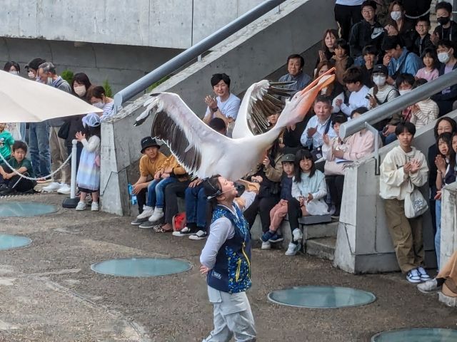かと思いきや、最後は飼育員さんの手に乗るという大技を披露。これは凄いです!!ちなみにペリカンの名前は「スズメ」。なぜそうなった・・・。
