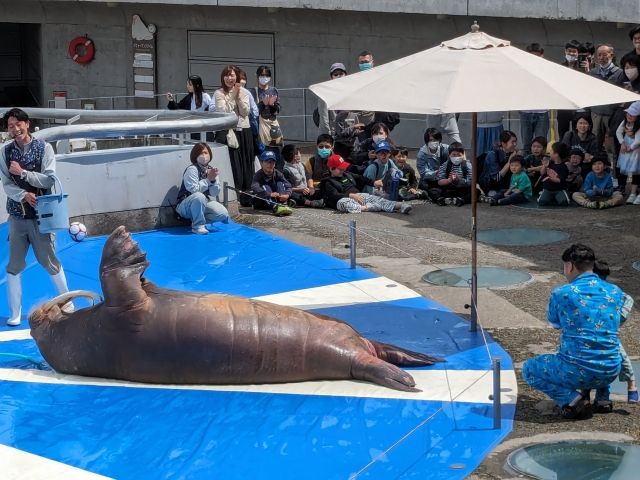 続いて登場するのはセイウチ。お兄さんと会話形式で進行していくため、コントみたいです。