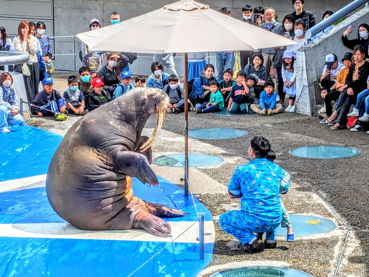 続いて登場するのはセイウチ。お兄さんと会話形式で進行していくため、コントみたいです。