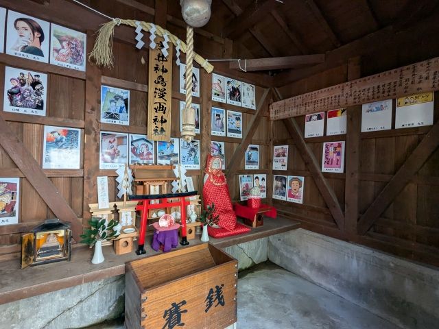 集落の細い路地を進むと、小さな神社が姿を現します。こちらは漫画神社