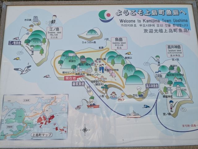 滞在時間48分で行ける範囲は限られています。というか、マップを見ても魚島には観光スポットや史跡がほとんど見当たりません。