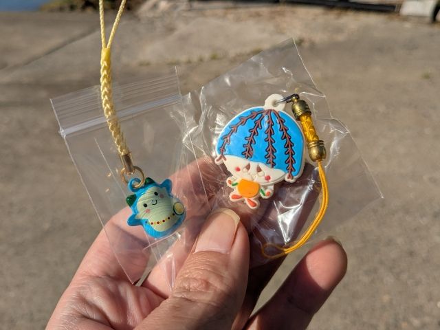 お会計時に、ストラップもらっちゃいました!左は上島町のキャラクター「かみりん」ですが、右は何のキャラクターなのでしょうか。