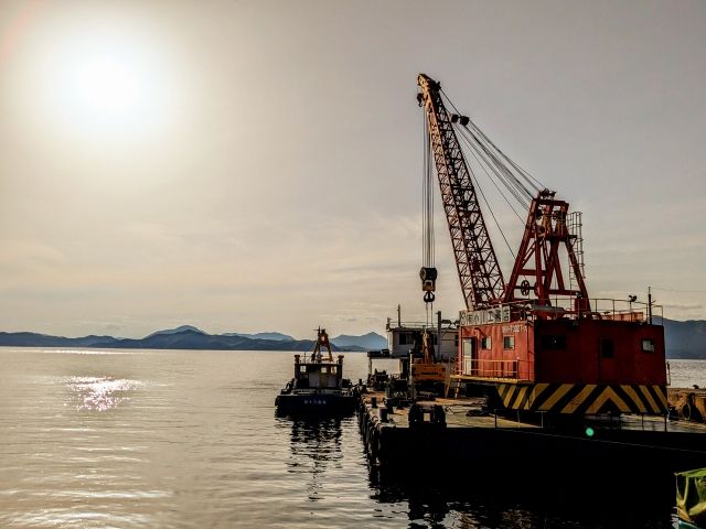 巨大なクレーン船。この島に来てからはひたすらアーティスティックな空気を感じ続けているので、これもまた作品に感じてしまいます。
