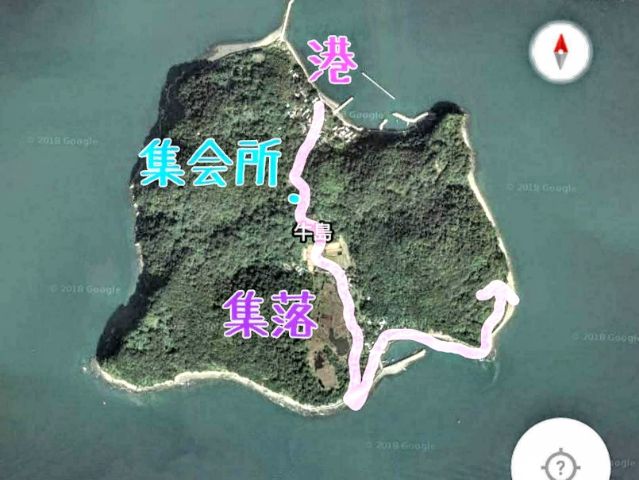 集会所から少し進むと、集落が見えてきました。牛島の集落は港から離れたところにあるのです。