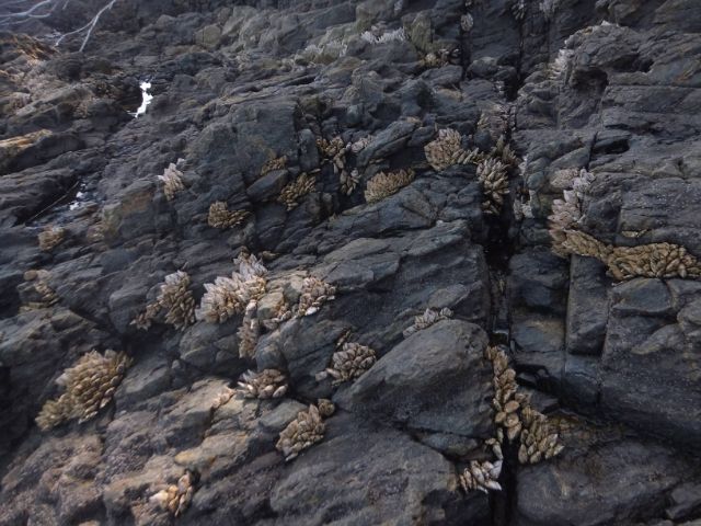 岩場に密集したカメノテは、こちらを威嚇しているかのよう。転んだらただでは済まないでしょう。