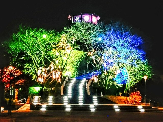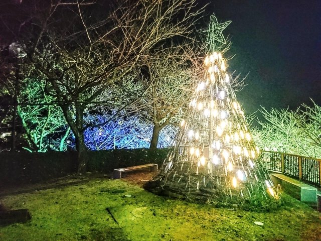 市内には常設のイルミネーションスポットが複数ありますが、おそらく最も著名なのは阿南駅の近くにある牛岐城址公園。