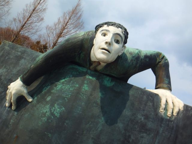 クレマチスの丘のシンボルといえばこちらの《壁をよじ登る男》。旅行雑誌などでもお馴染みのキャラクターです。