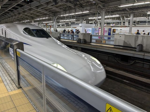新大阪駅についたら、駅弁を買ってホームへと向かいます。今回乗車する新幹線はこちら。