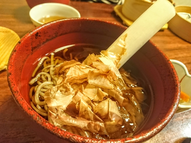 友達がセットメニューを頼んでいたのですが、そのお蕎麦が「ネギで食べる蕎麦」!福島県の大内宿が有名ですが、まさかここでも食べられるなんて。わっぱ飯と合わせて、一度に名物を味わうことができて何ともお得な感じです。