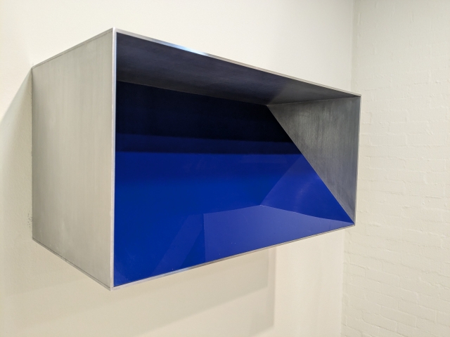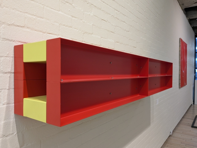 壁に設置された立体作品、タイトルはこちらも《無題》。アルミニウムを塗装した抽象的な作品です。「積み重ね(スタック)」と呼ばれる、ジャッドの代表作シリーズです。