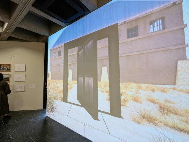 壁一面に映されるのは十字扉のCG。「アリーナ」の屋外に設置された、中心を軸に回転する扉。その動く様子がCGで再現されています。
