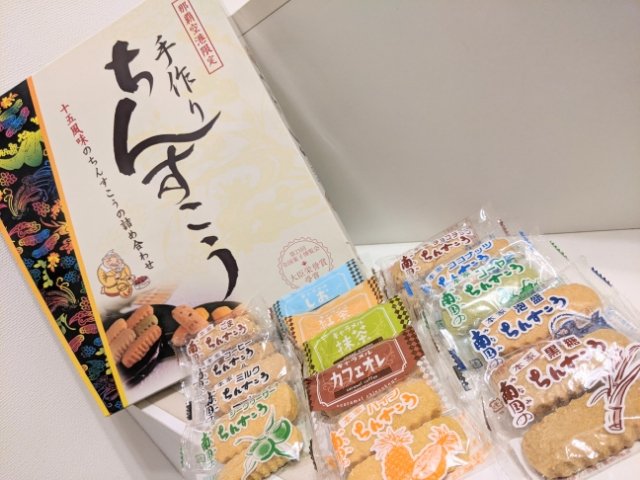 とりあえず定番の「ちんすこう」。低価格なのでばらまき土産にもぴったり。これほどコスパの良いお土産もなかなか無い気がします。今回買った「手作りちんすこう(南国製菓)」は、なんと15風味!定番のテイストに加えてゴーヤ、泡盛といったかなり攻めたラインナップも入ってます。
