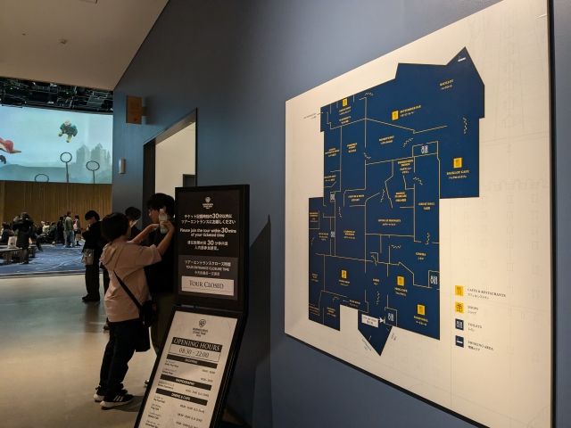 入口の近くには館内マップがあります。パンフレットもなく、途中にマップはほとんどないのでココで撮影しておくのがおすすめ。だってこのスタジオツアー、所要時間は4時間くらいかかる長丁場。滞在時間の制限はありませんが、トイレの位置や、いま全体のどのくらいまで進んだのかを把握するのにとっても役立ちます。