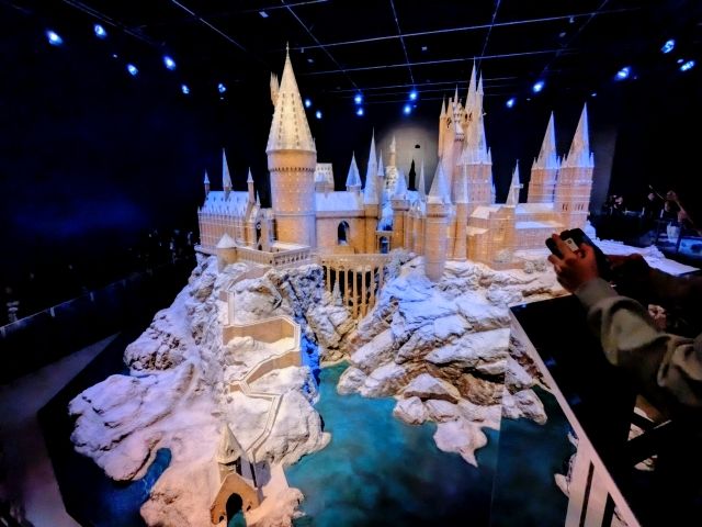 クライマックスは「ホグワーツ城の模型」。これは実際の映画の美術チームが作り上げた模型を忠実に再現したもの。ステンドグラスも落ち葉もすべて手作りということから、いったいどれほどの労力がかかっているのか計り知れません。本編ではグリーンバックで撮影、CGで背景製作を行っていたそうです。