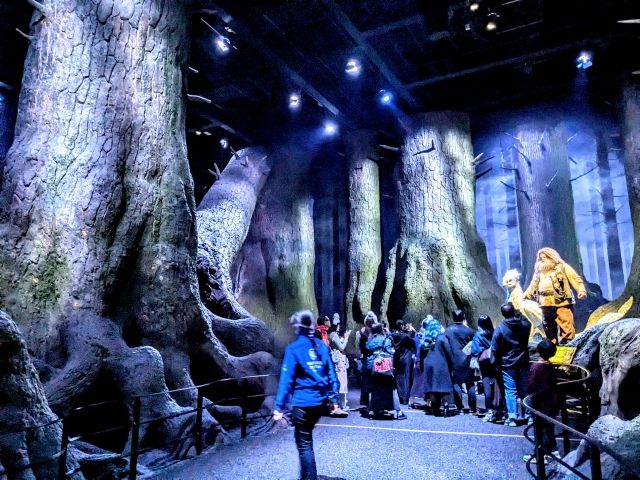 進んでいくと薄暗いエリアに突入。ここは「禁じられた森」。巨大な樹木が生い茂る先には、ハグリッドとバックビークの姿が。